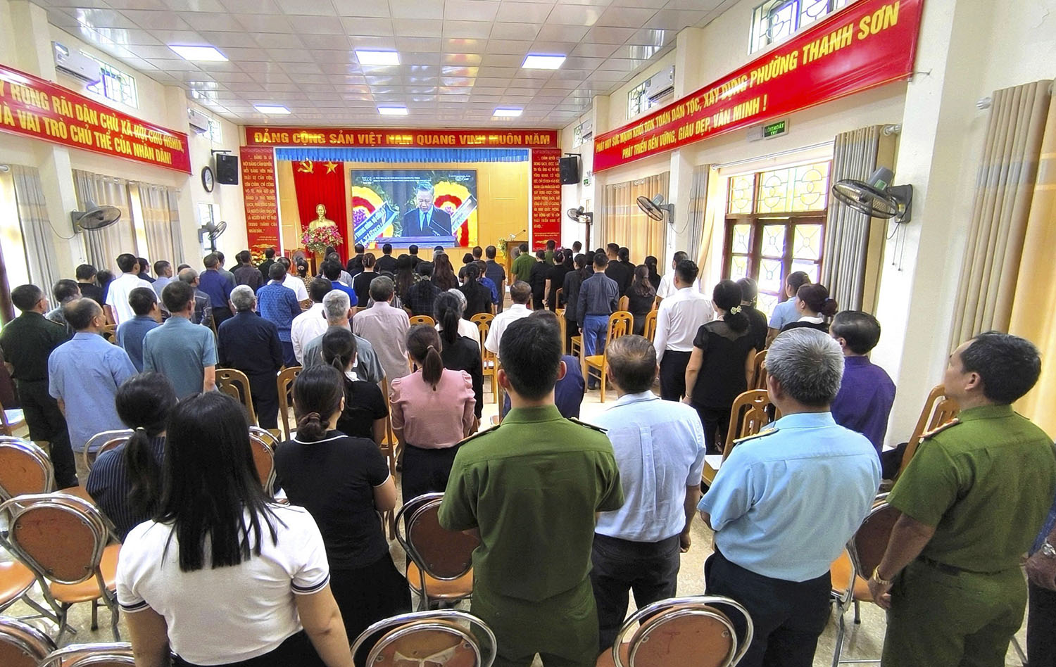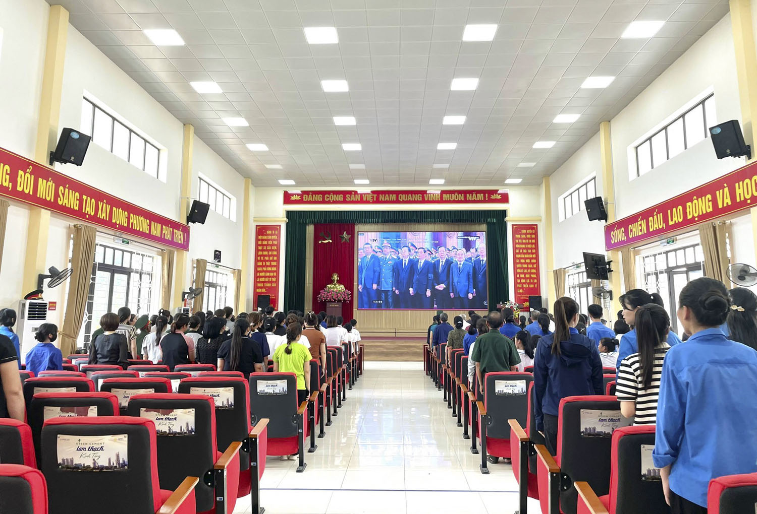 Các xã phường dự lễ truy điệu tập trung qua truyền hình trực tiếp.