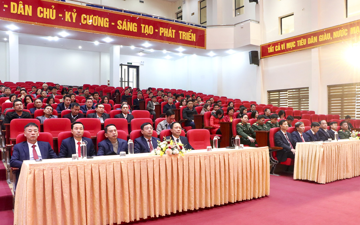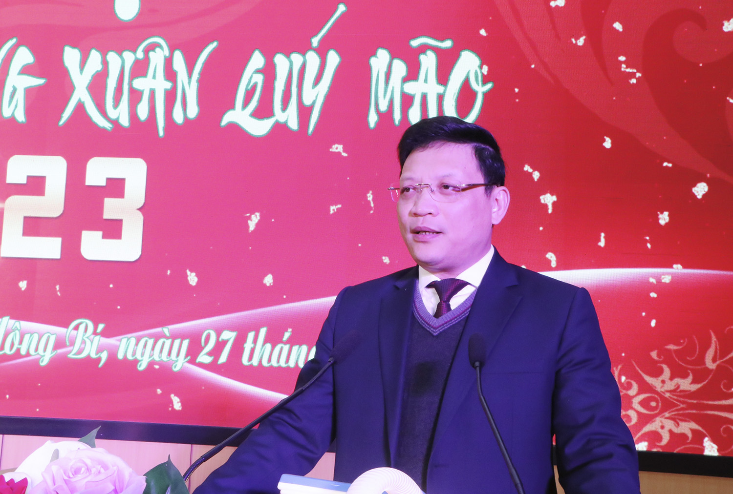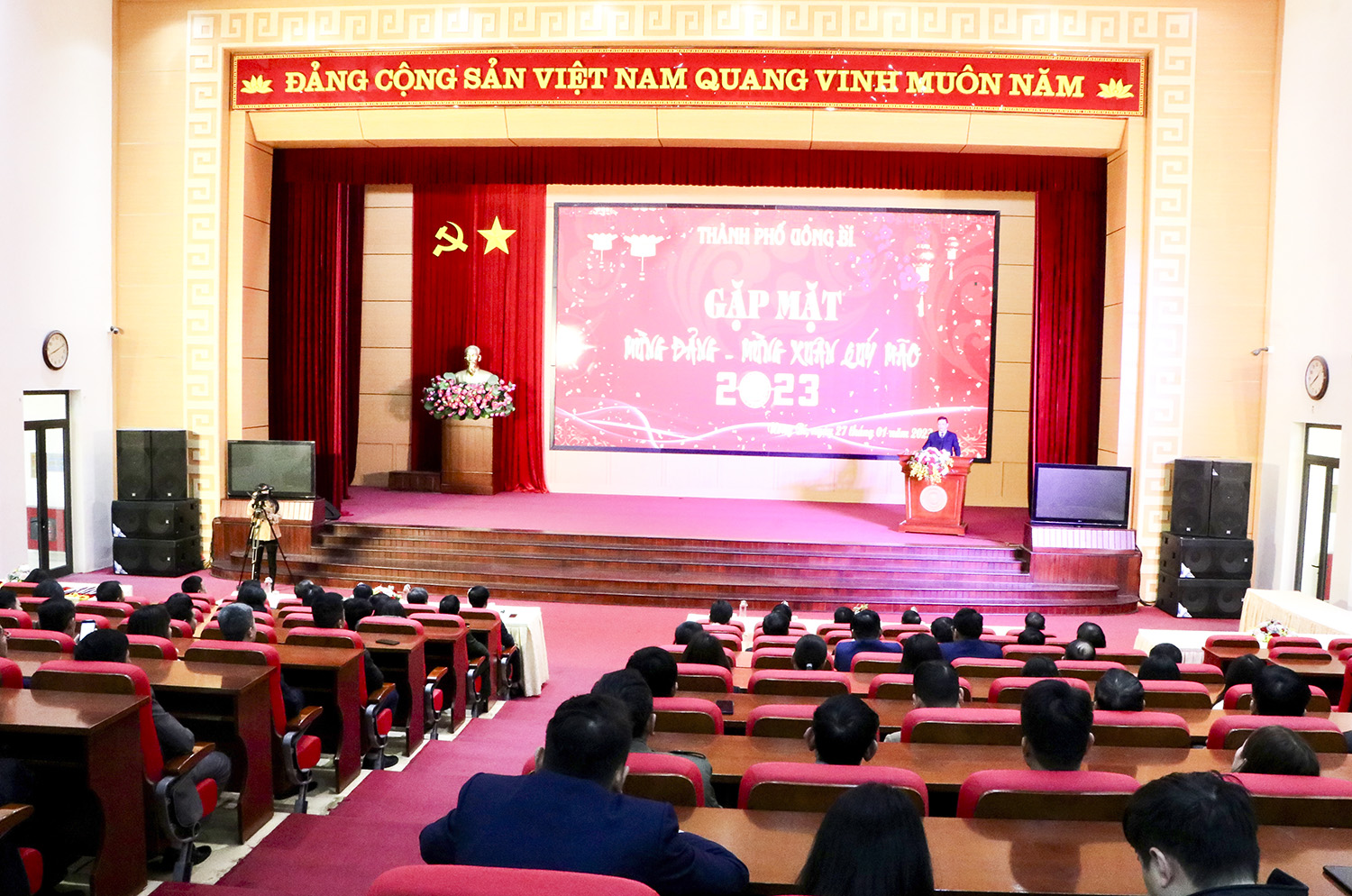 Phát biểu tại buổi gặp mặt, đồng chí Nghiêm Xuân Cường, Tỉnh ủy viên, Bí thư Thành ủy, Chủ tịch HĐND thành phố ghi nhận, biểu dương những cố gắng, nỗ lực của tập thể các cơ quan, đơn vị, đội ngũ cán bộ công chức, viên chức trong thực hiện hiệu quả nhiệm vụ công tác năm 2022 và tổ chức tốt các hoạt động vui xuân, đón Tết Nguyên đán Quý Mão 2023 cho Nhân dân.