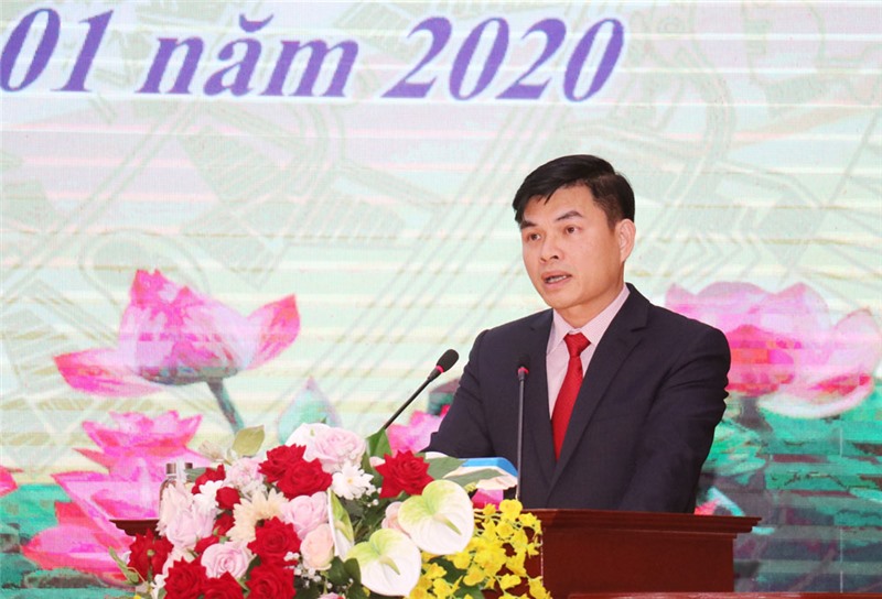 Đồng chí Trần Văn Lâm, Tỉnh ủy viên, Bí thư Thành ủy, Chủ tịch HĐND thành phố phát biểu tại buổi gặp mặt.