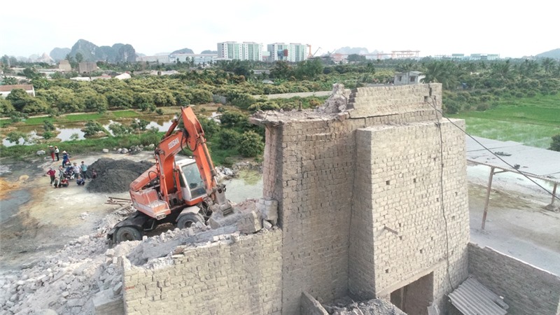 Lò vôi của ông Phùng Văn Kết tại thôn Cẩm Hồng đang được tháo dỡ bởi sự hỗ trợ từ UBND thành phố Uông Bí.