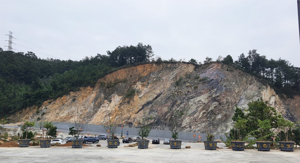 Vị trí vách núi bên đường Yên Tử (đoạn trước chùa Suối Tắm) đang trống, trọc, chưa tạo được cảnh quan môi trường.