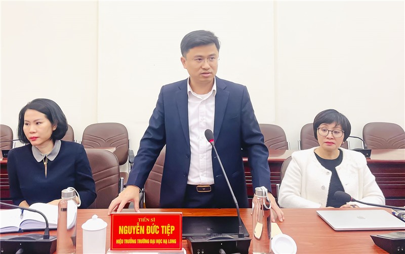 Tiến sĩ Nguyễn Đức Tiệp, Hiệu trưởng Trường Đại học Hạ Long phát biểu tại buổi làm việc.