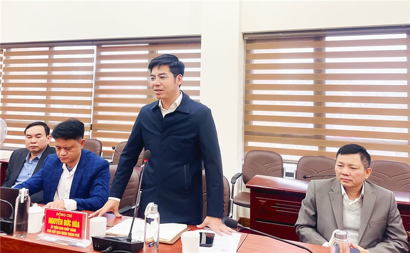 Đồng chí Nguyễn Đức Hoà, Phó Chủ tịch UBND thành phố phát biểu tại buổi làm việc.