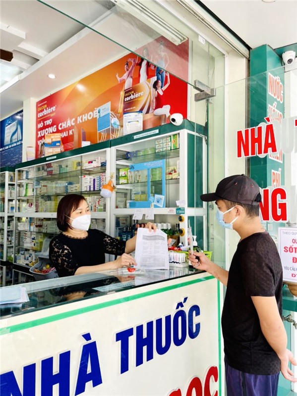 Người dân mua kit test nhanh COVID-19 tại một nhà thuốc trên địa bàn P. Thanh Sơn.