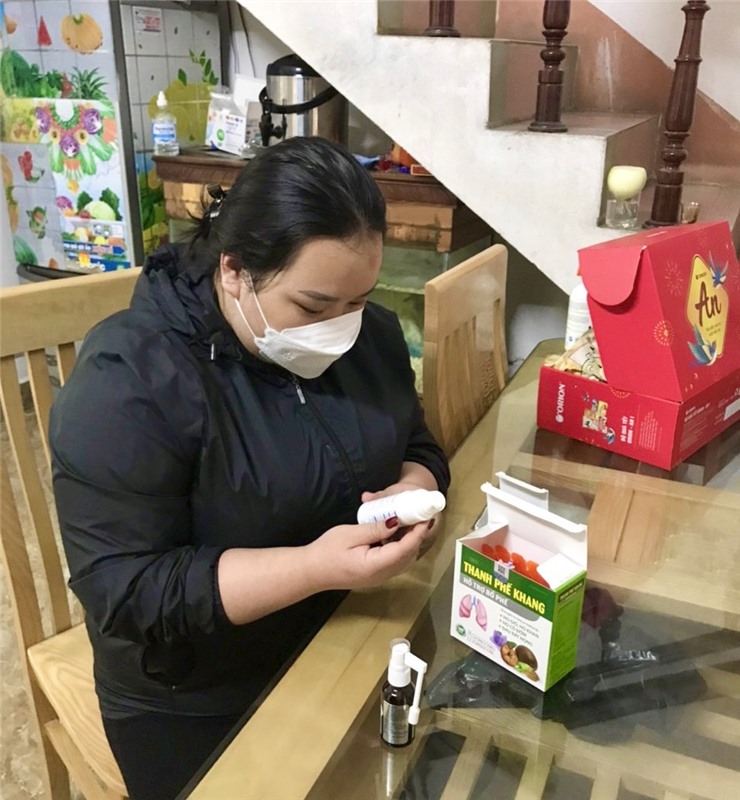 Còn gia đình chị Phạm Thị Quỳnh Hà ở khu 4, phường Thanh Sơn chủ yếu là đeo khẩu trang và hạn chế tiếp xúc đông người, trong nhà chị Hà không có các loại thuốc dự phòng bởi đối với chị chỉ khi nào mắc bệnh mới cần tới thuốc. Tuy nhiên, được Tổ Covid -19 cộng đồng đến nhà tuyên truyền cấp phát hướng dẫn “Chăm sóc điều trị người nhiễm Covid -19 tại nhà” chị đã nhận thức rõ hơn việc cần phải chủ động chuẩn bị các điều kiện để chăm sóc bản thân, gia đình trong trường hợp mắc bệnh dịch. Chị Hà chia sẻ: “Từ trước đến nay gia đình tôi không có bệnh gì, nên tôi cũng không tích trữ thuốc trong nhà. Bây giờ thì khác rồi, các trường hợp mắc Covid -19 nhiều, ngay ở gần kề nhà tôi cũng có vài nhà phải cách ly y tế do nhiễm dịch bệnh. Nên bây giờ bên cạnh nước sát khuẩn tay, nước muối súc miệng tôi cũng sẽ chuẩn bị thêm một ít thuốc theo khuyến cáo của ngành y tế. Chủ động đề phòng trường hợp gia đình mình có người là F0 thì có thuốc để sử dụng luôn mà không phải di chuyển đi lại gây nguy cơ cao phát tán bệnh dịch nữa ”.