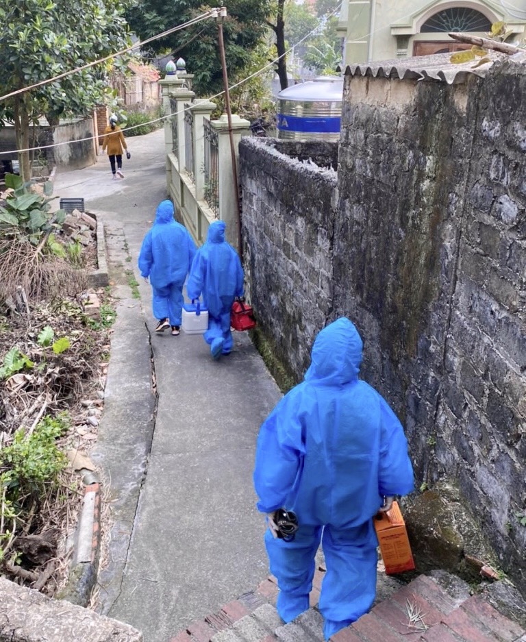 Tổ công tác kiểm tra sức khỏe và tiêm vắc xin phòng COVID tại nhà cho người già yếu, đi lại khó khăn.