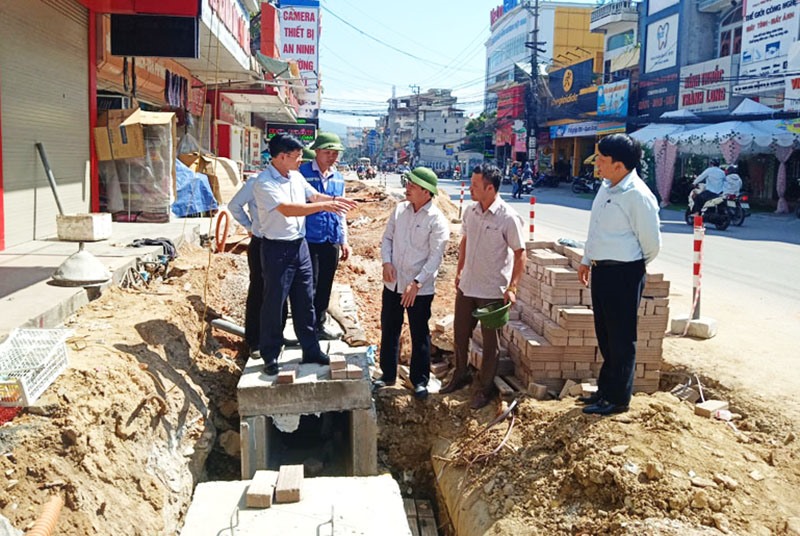 Lãnh đạo TP Uông Bí kiểm tra tiến độ thi công công trình nâng cấp tuyến phố văn minh trên địa bàn TP Uông Bí.