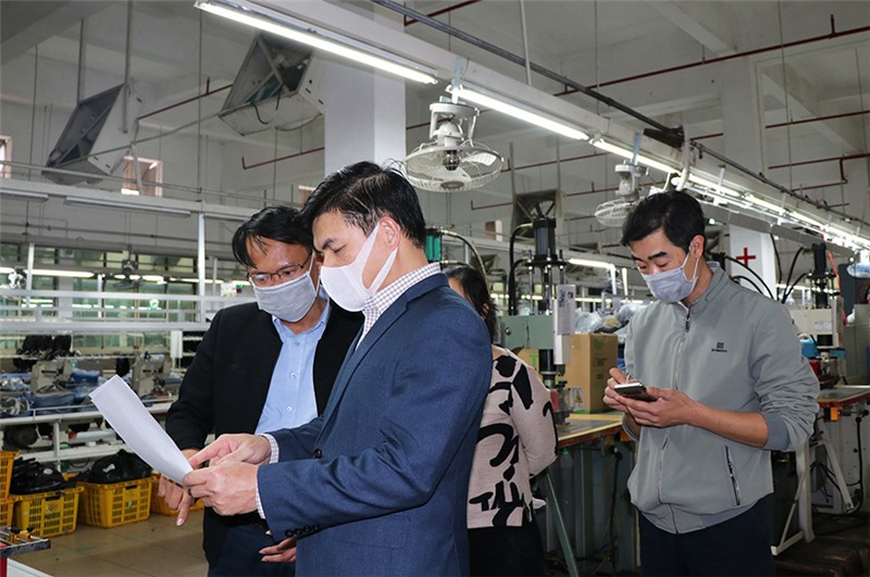 Chủ tịch UBND TP Uông Bí kiểm tra công tác phòng, chống dịch Covid - 19 tại Chi nhánh Công ty giày da Sao Vàng Uông Bí.