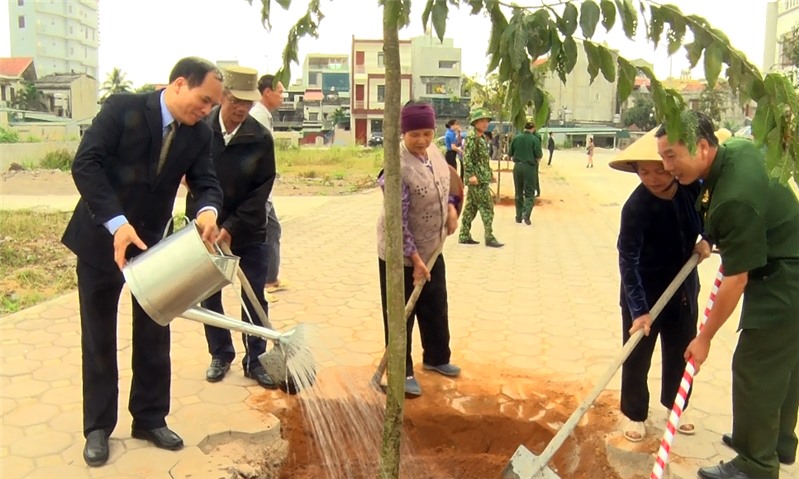 Sau lễ phát động, các đại biểu đã tiến hành trồng 60 cây xanh loại Sao đen và cây Viết tại khu đô thị mới khu 7, phường Quang Trung.