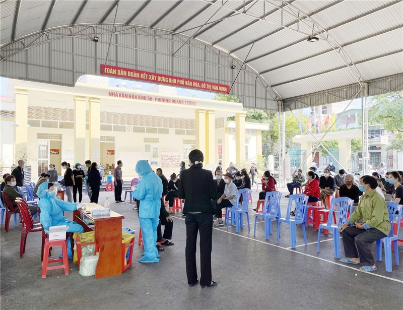 Phát huy trách nhiệm, quyết tâm chung tay cùng phường, thành phố kiểm soát dịch Covid-19 nhanh nhất, Nhân dân khu 5B, phường Quang Trung chủ động xét nghiệm tầm soát dịch trong cộng đồng.