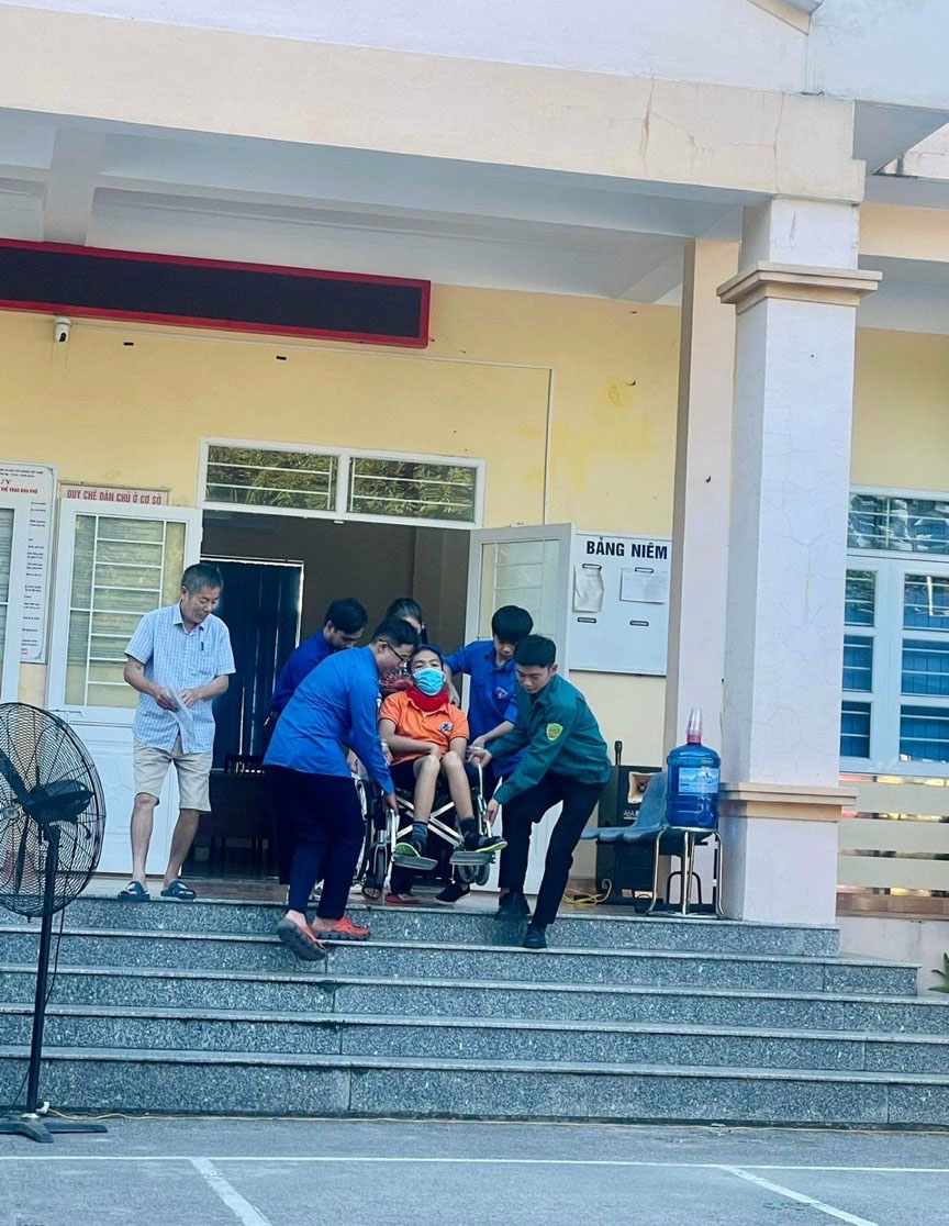 Thanh niên tình nguyện hỗ trợ nhân dân tại điểm tiêm Nhà văn hoá khu 4, phường Thanh Sơn.