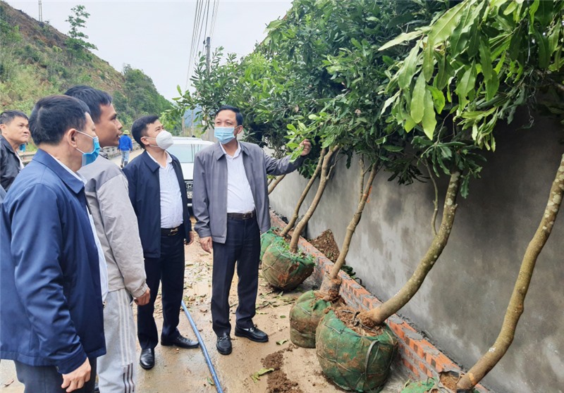 Lãnh đạo TP Uông Bí kiểm tra mô hình trồng cây mắc ca tại phường Vàng Danh.