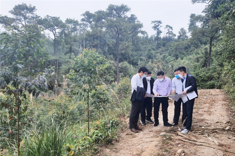 Bí thư Thành ủy Uông Bí Nghiêm Xuân Cường khảo sát thực tế dải rừng sau hồ Yên Trung.