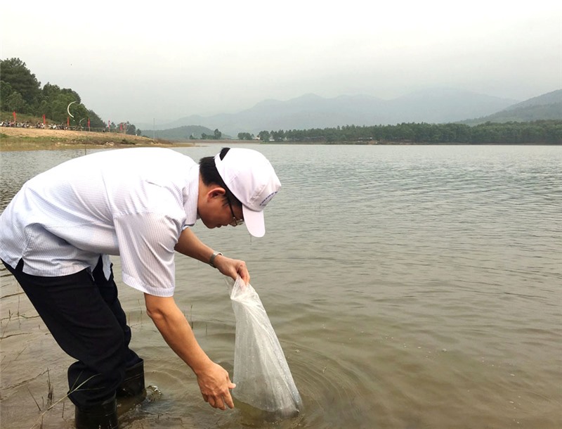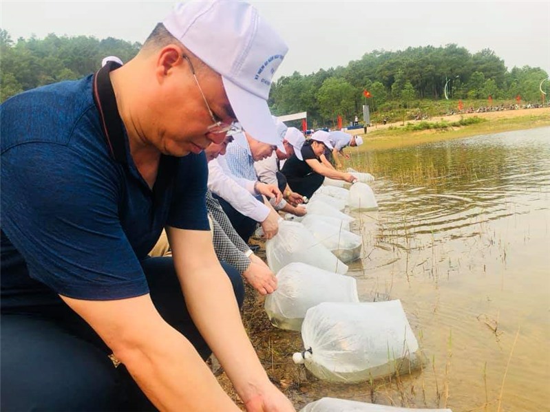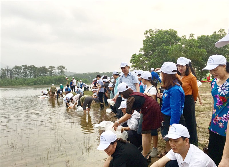 Ngay sau buổi lễ phát động, đông đảo cán bộ và nhân dân thành phố đã tham gia thả 1.500 cá giống các loại xuống hồ Yên Trung. Cùng ngày, 500 con cá giống cũng được thả tái tạo tại Trung tâm TKCHCN thành phố Uông Bí.