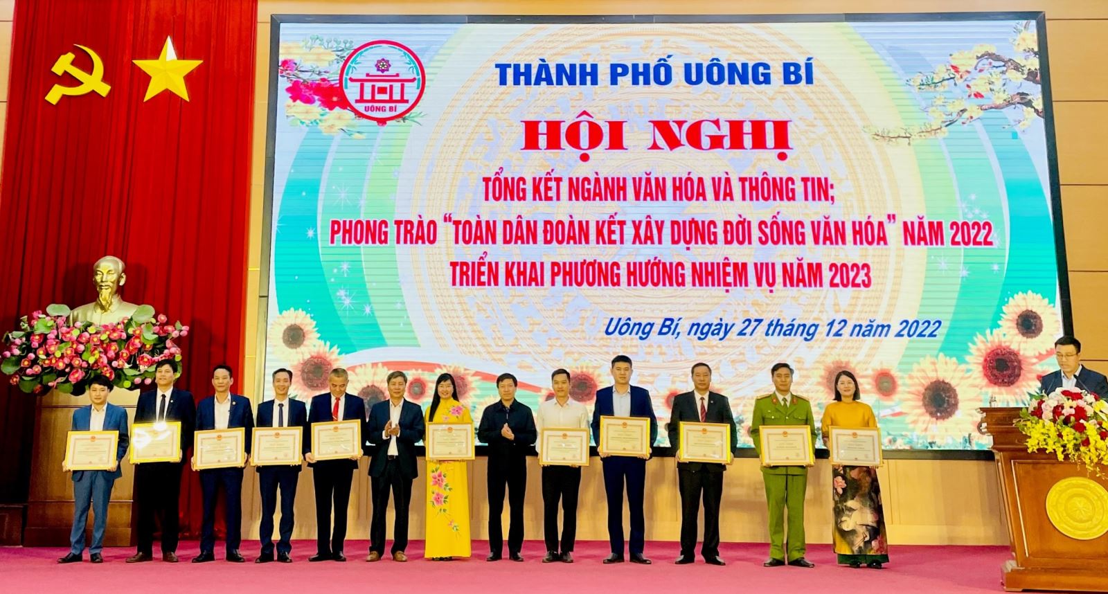 Tại hội nghị, 3 tập thể và 16 cá nhân tiêu biểu trong công tác văn hóa và thông tin; 9 tập thể, 2 cá nhân xuất sắc trong phong trào “Toàn dân đoàn kết xây dựng đời sống văn hóa” của TP Uông Bí năm 2022; 15 thôn, khu giữ vững danh hiệu “Thôn, khu văn hóa 5 năm liên tục” giai đoạn 2017-2021 và 22 thôn, khu giai đoạn 2018-2022 đã vinh dự được biểu dương, khen thưởng.