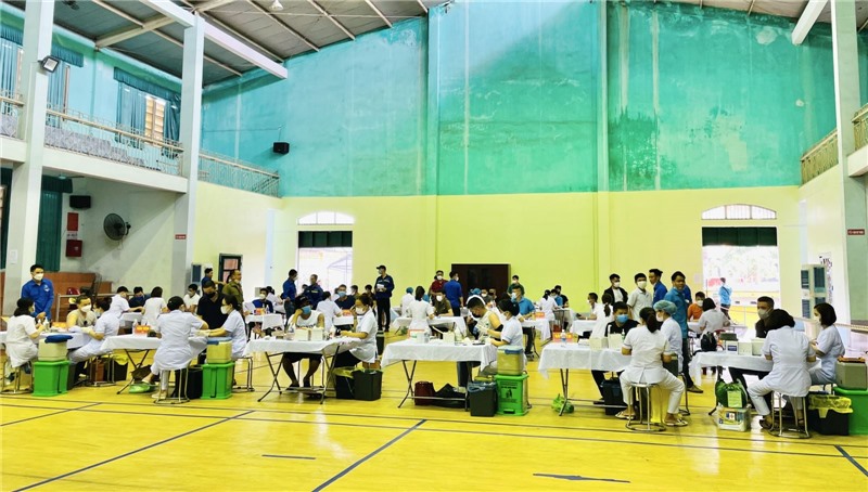 Điểm tiêm nhà thi đấu Công ty Than Uông Bí -TKV trong sáng ngày 9/6.