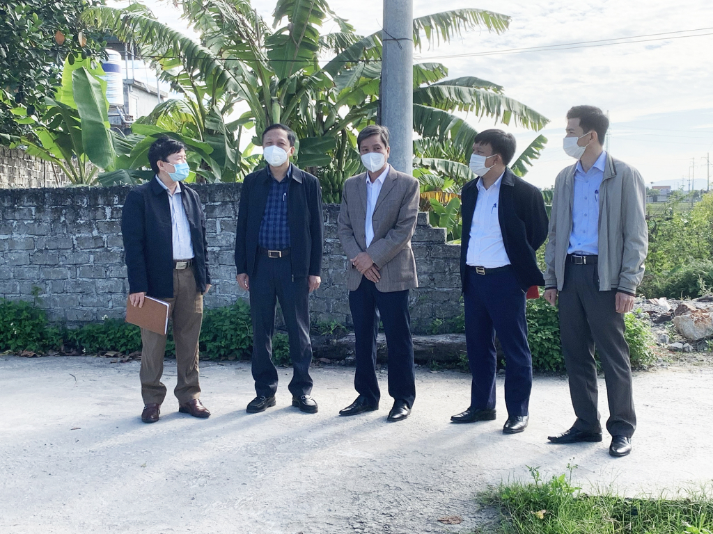 Lãnh đạo TP Uông Bí kiểm tra thực địa khu vực nhà ở của F0 Lý Thị Q và Vũ Trung N để lên phương án thí điểm cho điều trị 2 trường hợp này tại nhà.
