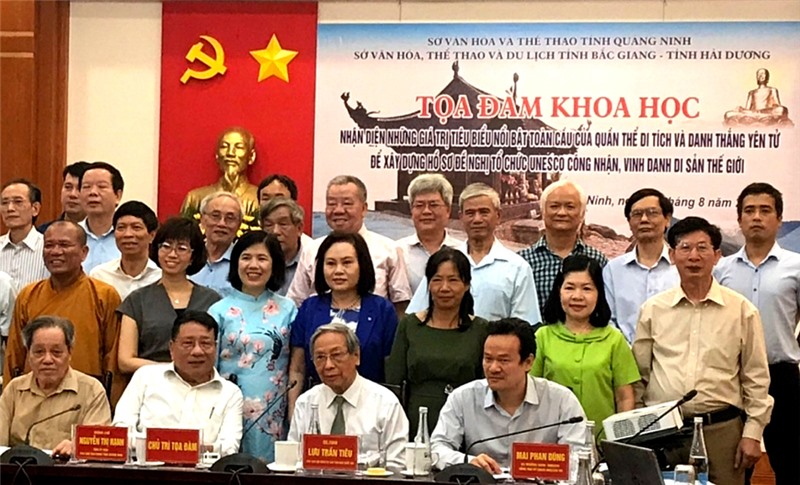 Ông Trần Trương (từ phải sang, đứng thứ nhất tại hàng hai) tại Tọa đàm khoa học Nhận diện những giá trị tiêu biểu, nổi bật toàn cầu của quần thể Di tích và danh thắng Yên Tử, để xây dựng hồ sơ đề nghị tổ chức UNESCO vinh danh Di sản thế giới. (Ảnh nhân vật cung cấp)