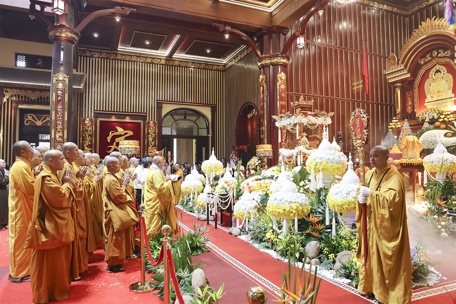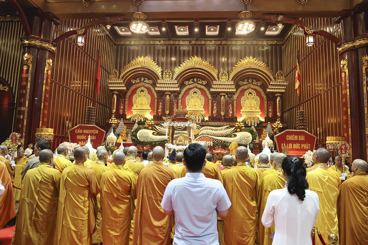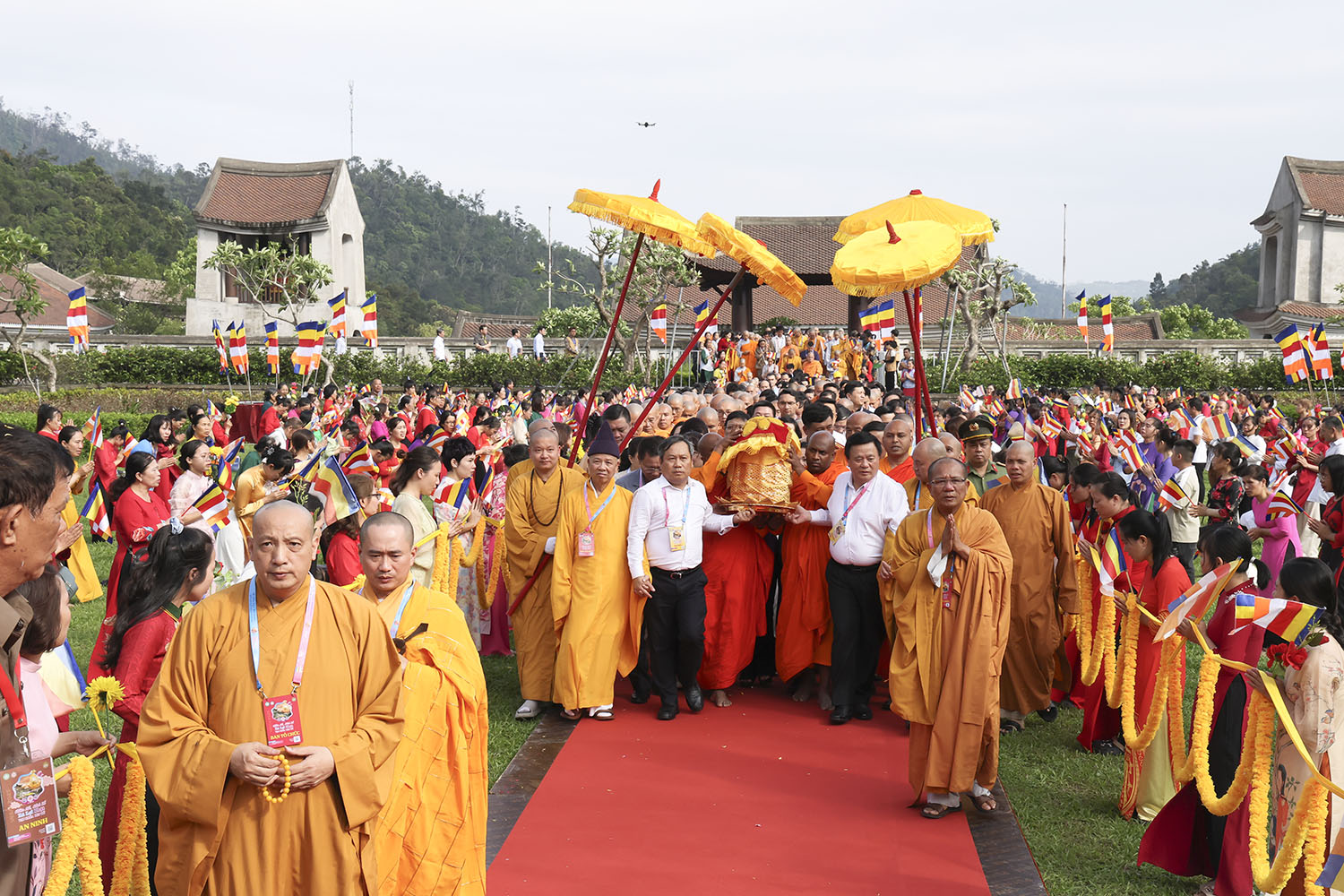 Lễ cung nghinh và an vị Xá lợi Đức Phật được Ban Trị sự Giáo hội Phật giáo tỉnh Quảng Ninh tổ chức với nghi thức trang trọng. Sau đó, toàn thể đại chúng đã trì tụng nghi thức Phật đản, đồng thời hướng về kim thân Xá lợi Đức Phật cầu nguyện quốc thái dân an, hòa bình cho thế giới. Chư tôn đức đến từ Ấn Độ cũng đã thực hành nghi thức hệ phái bằng ngôn ngữ Pali.
