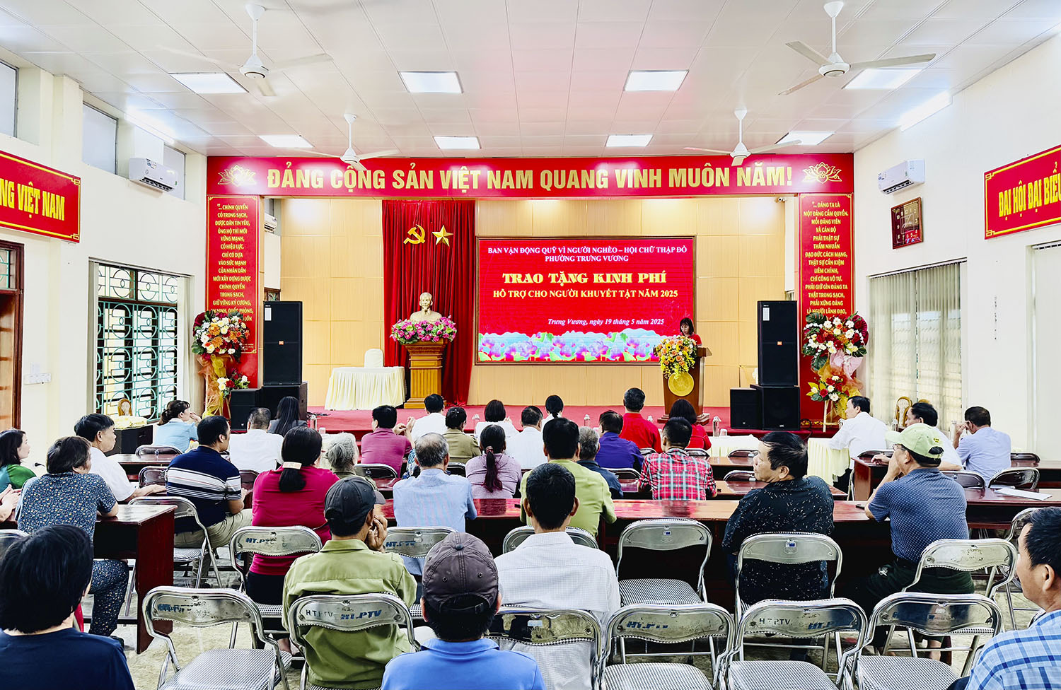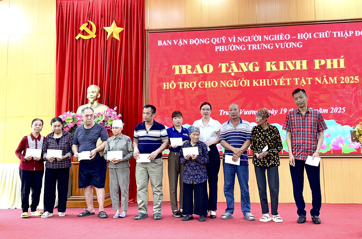 Hưởng ứng Tháng Nhân đạo năm 2025 với chủ đề “Kết nối cộng đồng - Lan tỏa hành động nhân ái”, sáng ngày 19/5, Ban Vận động Quỹ “Vì người nghèo” phối hợp với Hội Chữ thập đỏ phường Trưng Vương tổ chức chương trình trao kinh phí hỗ trợ cho người khuyết tật có hoàn cảnh khó khăn trên địa bàn.