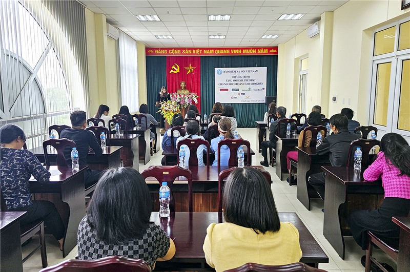 BHXH thành phố và các nhà tài trợ trao tặng thẻ BHYT cho những người có hoàn cảnh khó khăn.