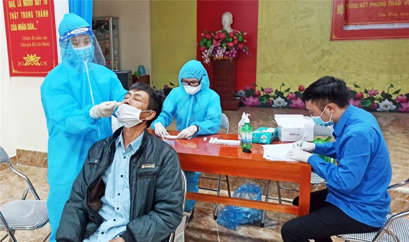 Người dân khu Cẩm Hồng thực hiện lấy mẫu test nhanh Covid - 19.
