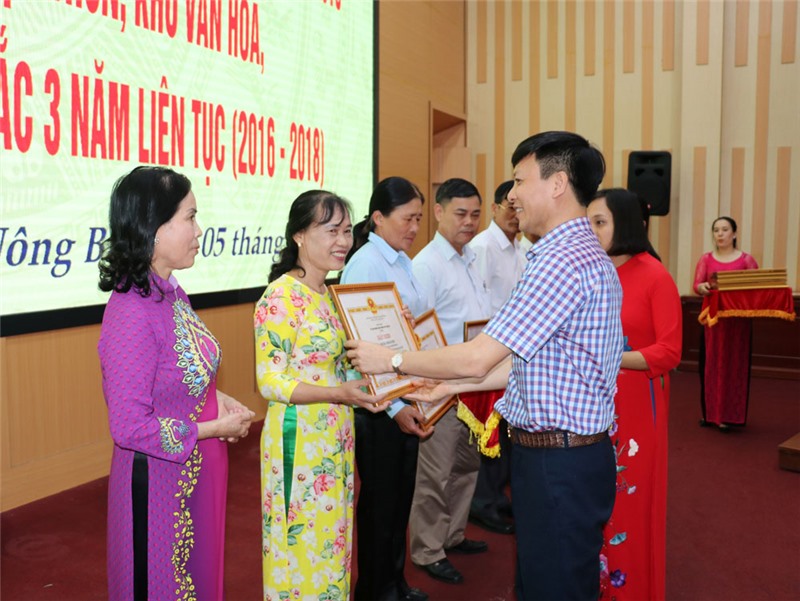 Nhân dịp này, UBND thành phố đã khen thưởng 5 tập thể, 10 cá nhân có thành tích xuất sắc trong thực hiện phong trào toàn dân đoàn kết xây dựng đời sống văn hóa năm 2018; khen thưởng 6 thôn, khu giữ vững danh hiệu văn hóa 3 năm liên tục, 43 gia đình văn hóa xuất sắc tiêu biểu 3 năm liên tục.