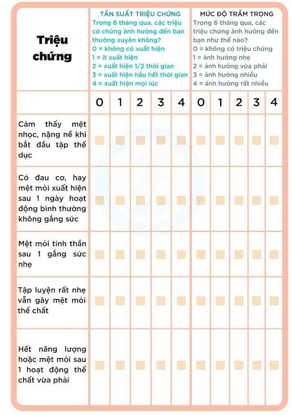 Người bệnh có thể tự đánh giá theo bảng hướng dẫn bên dưới. Nếu có một triệu chứng đánh giá mức độ 2 trở lên ở cả hai cột thì đang mắc di chứng.
