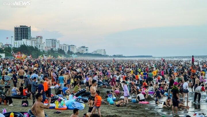 Nhiều người dân lựa chọn bãi biển Sầm Sơn (Thanh Hóa) là địa điểm vui chơi dịp nghỉ lễ 30/4-1/5. (Ảnh: Ngô Nhung)