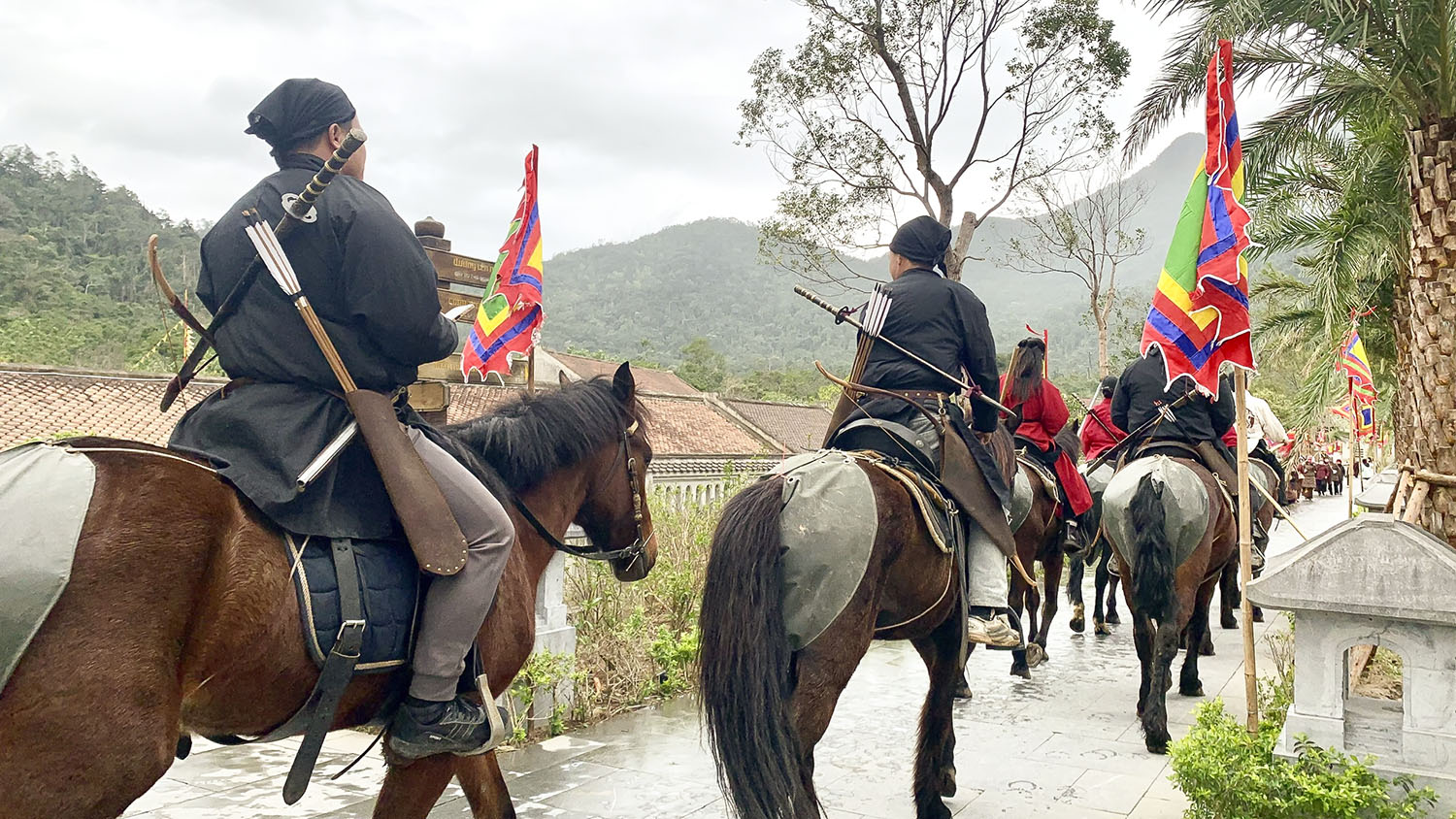 Bên cạnh các trò chơi dân gian, đoàn CLB Kỵ xạ Hà Nội phối hợp cùng Công ty PT Phát triển Tùng Lâm biểu diễn tại Quảng trường Minh Tâm. Đây cũng là cơ hội cho du khách tham gia trải nghiệm và check-in trong hành trình trải nghiệm về miền đất Phật Yên Tử.