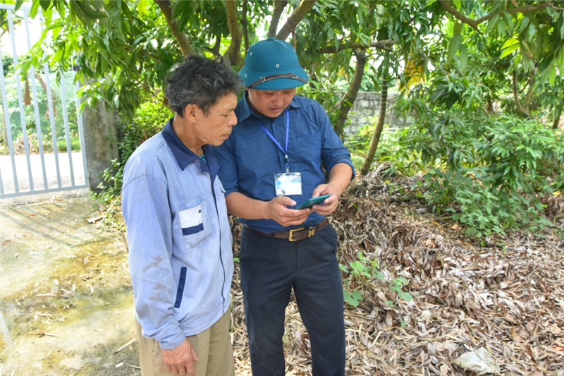 Cán bộ Hội Nông dân phường Phương Nam (TP Uông Bí) hướng dẫn hội viên vay vốn sản xuất.