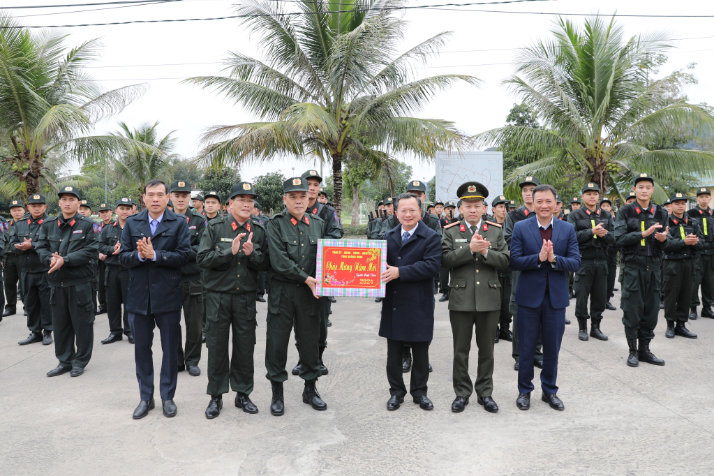 Thăm, chúc Tết lực lượng Công an, quân đội… làm nhiệm vụ trực Tết, các đồng chí lãnh đạo tỉnh đã ghi nhận những nỗ lực của các đơn vị, lực lượng luôn sâu sát nắm tình hình, phát huy vai trò nòng cốt trong công tác đảm bảo an ninh chính trị, an toàn xã hội; góp phần giữ địa bàn toàn tỉnh an toàn, ổn định, phát triển, mang lại sự bình yên, hạnh phúc cho nhân dân; bảo vệ vững chắc chủ quyền biên giới, biển đảo; giữ vững an ninh chính trị, an toàn xã hội địa bàn…