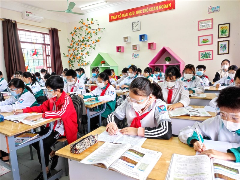 Để đảm bảo môi trường học tập an toàn khi đón học sinh trở lại, các nhà trường tăng cường thực hiện nghiêm quy định phòng chống dịch Covid-19, đặc biệt là quy định “5K” gắn với vai trò, trách nhiệm của người đứng đầu. Trong đó đã tổ chức tổng vệ sinh toàn bộ khuôn viên trường, lớp ngay trước khi học sinh đến trường; thường xuyên vệ sinh, khử khuẩn trong quá hình tổ chức dạy học; bố trí đầy đủ vật tư, trang thiết bị y tế cần thiết để thực hiện phòng, chống dịch tại các cơ sở. Các trường chỉ tổ chức các hoạt động giáo dục, bán trú, đưa đón học sinh... trong điều kiện đảm bảo an toàn phòng, chống dịch; chưa tổ chức các hoạt động tập thể đông người như: Chào cờ; Thể dục giữa giờ,...;
