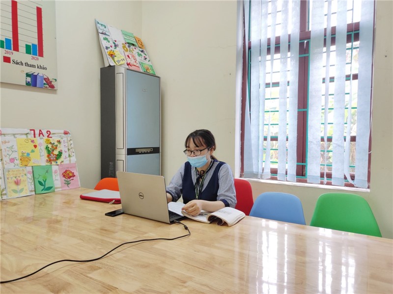 Giáo viên dạy học trực tuyến cho lớp học có học sinh là F1.