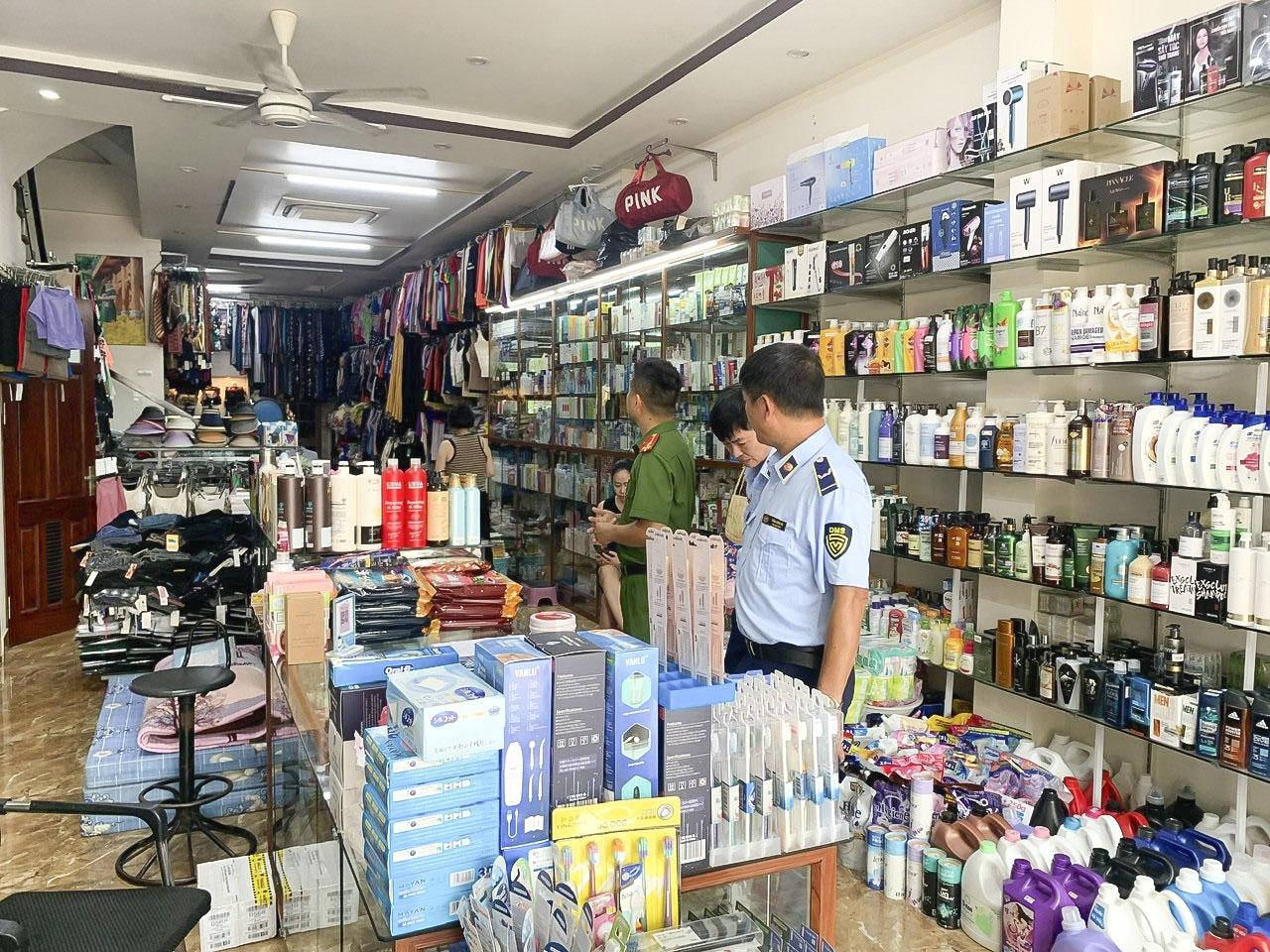 Các lực lượng chức năng thành phố kiểm tra tại hộ kinh doanh trên địa bàn.
