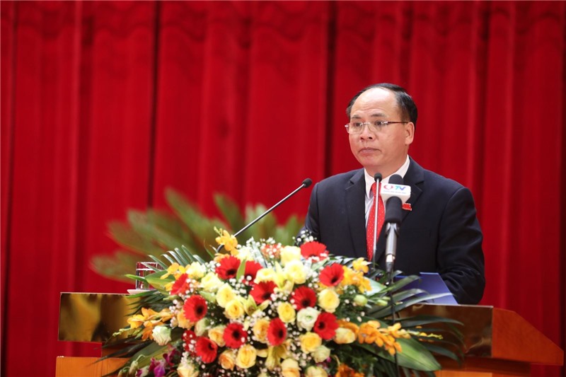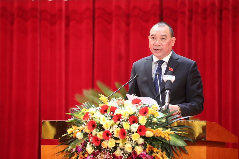 Chủ tịch UBND tỉnh Nguyễn Tường Văn báo cáo tóm tắt về tình hình phát triển KT-XH, công tác chỉ đạo, điều hành của UBND tỉnh năm 2020 và nhiệm vụ giải pháp năm 2021.
