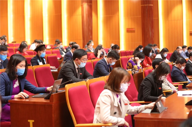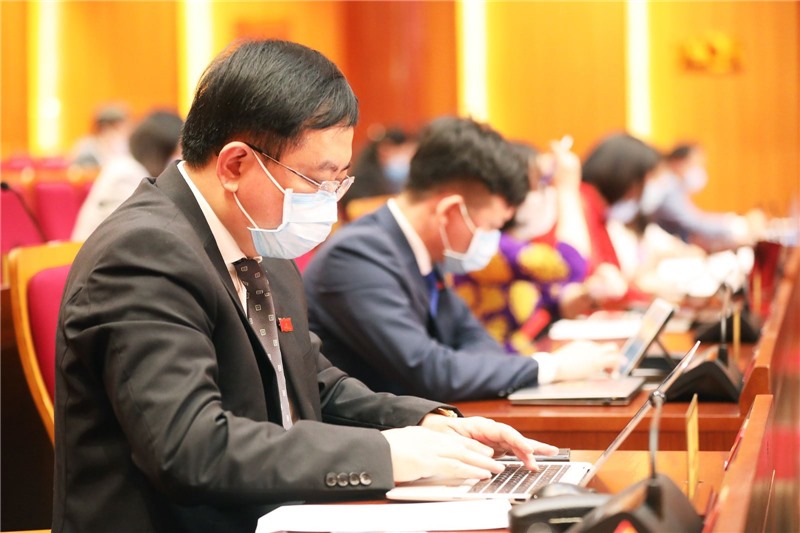Các đại biểu dự kỳ họp tuân thủ nghiêm quy định phòng, chống dịch.