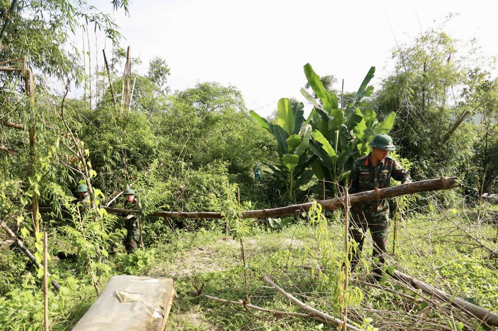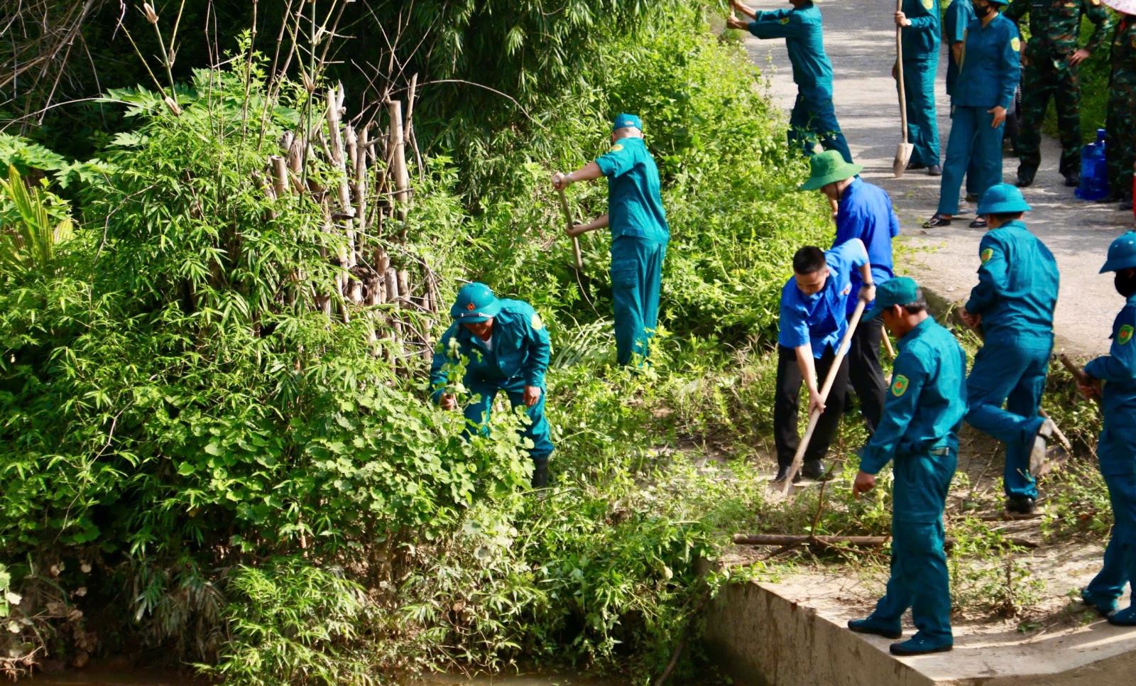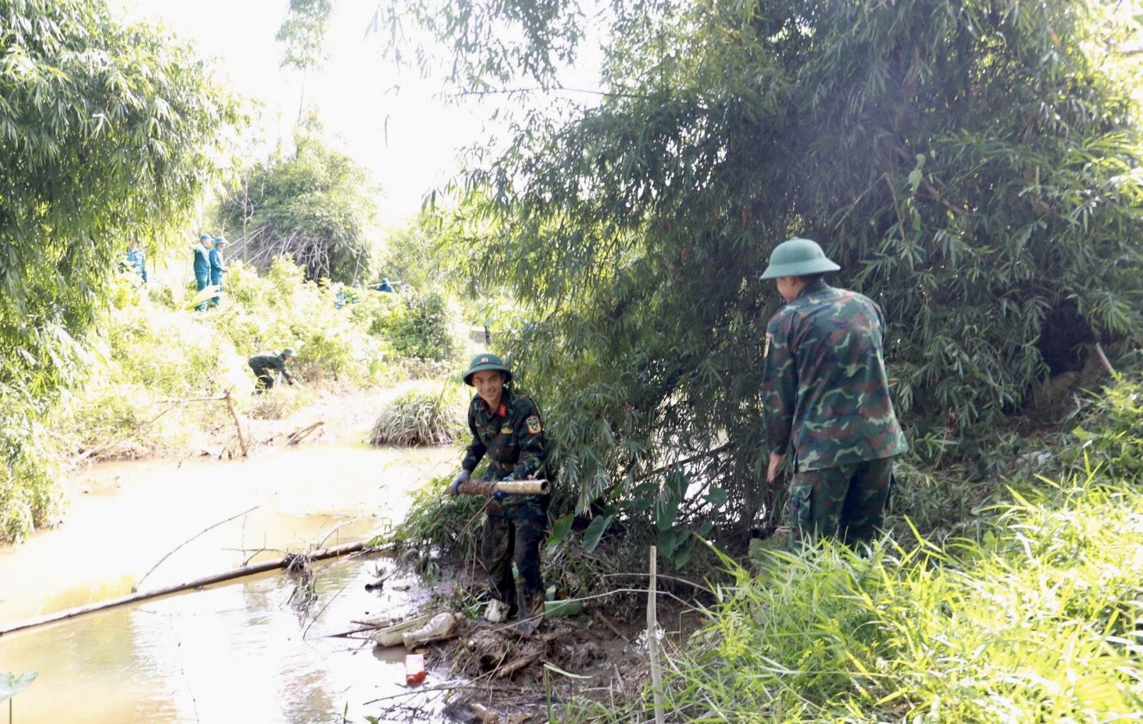 Cán bộ, chiến sĩ Trung đoàn 244 tích cực phối hợp với các lực lượng địa phương phát quang, vệ sinh, khơi thông suối 12 khe tại khu Bắc Sơn 5 và 6.
