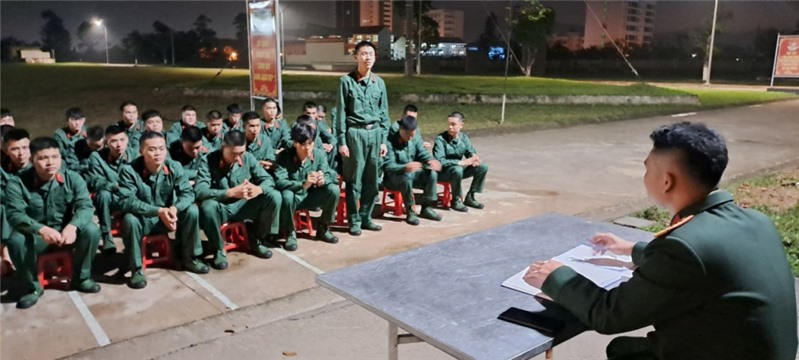 Chiến sĩ mới tại Trung đoàn 244 (Bộ CHQS tỉnh) tham gia sinh hoạt buổi tối.