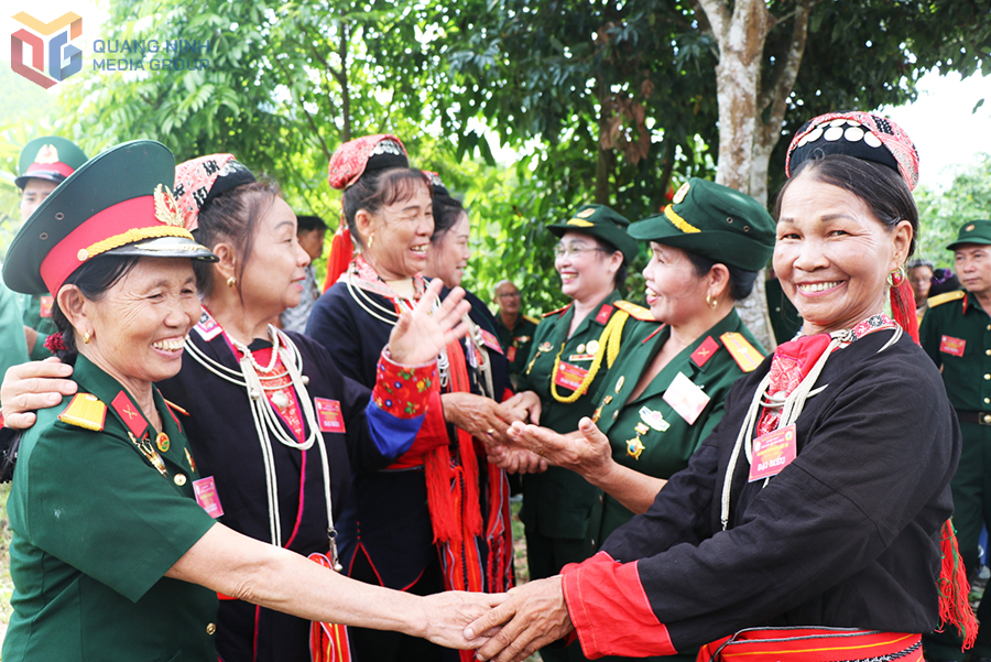Niềm vui gặp gỡ giữa các chiến sĩ Trung đoàn 5 - Yên Tử và người dân xã Thượng Yên Công. Ảnh: Việt Hoa