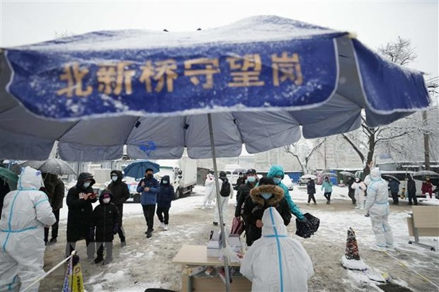 Người dân đăng ký xét nghiệm COVID-19 tại Bắc Kinh, Trung Quốc. (Ảnh: THX/TTXVN)