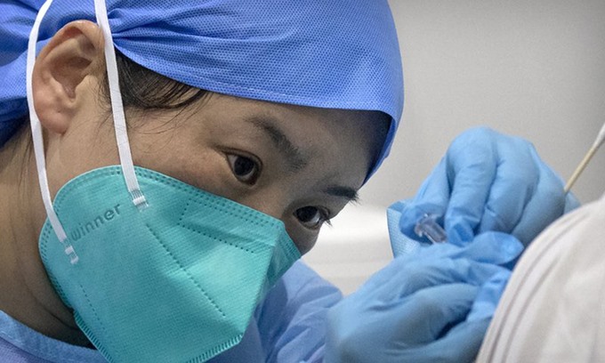 Nhân viên y tế tiêm vaccine Covid-19 cho người dân tại một cơ sở tiêm chủng ở Bắc Kinh, Trung Quốc hồi tháng 1. Ảnh: AP.