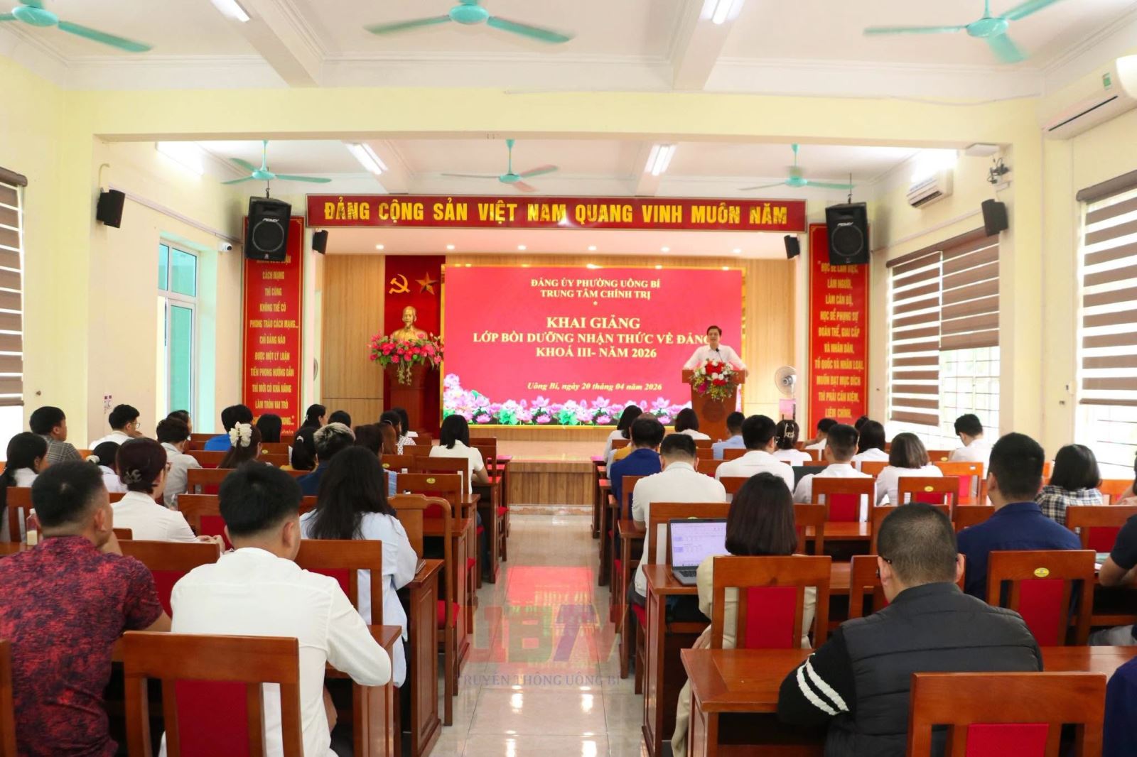 Ngày 20/4, Trung tâm chính trị phường Uông Bí khai giảng lớp bồi dưỡng nhận thức về Đảng khóa III năm 2026 cho gần 90 quần chúng của 3 đảng bộ phường Uông Bí, Vàng Danh, Yên tử và Đảng bộ các đơn vị: Bệnh viện Việt Nam - Thụy Điển Uông Bí, Công ty Nhiệt điện Uông Bí.