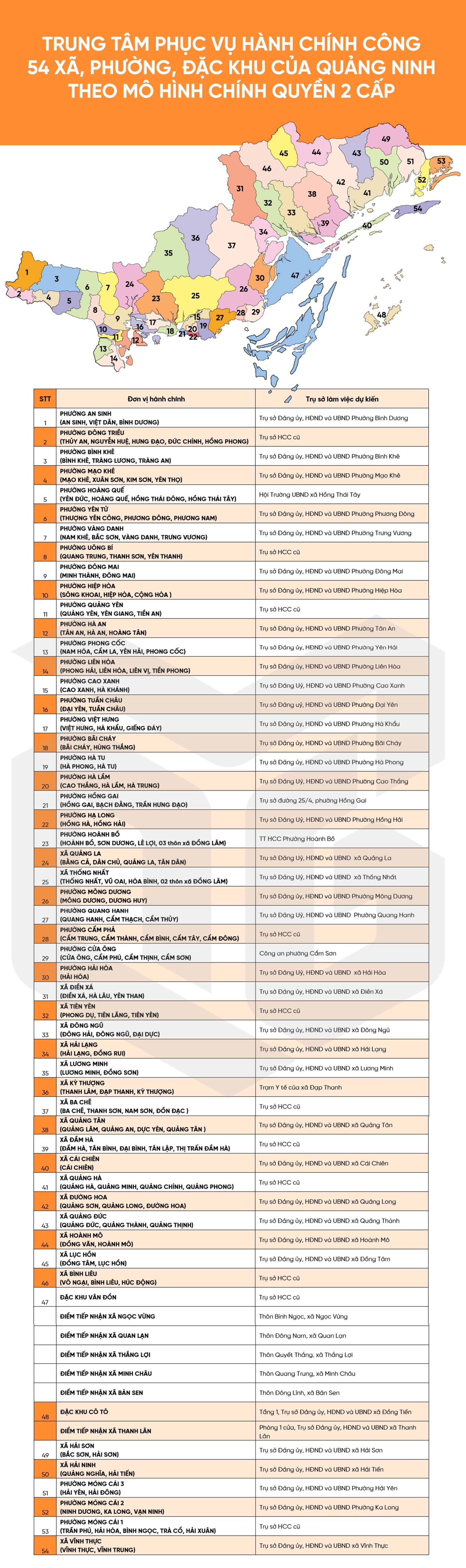 Trung tâm Phục vụ hành chính công 54 đơn vị hành chính mới của Quảng Ninh