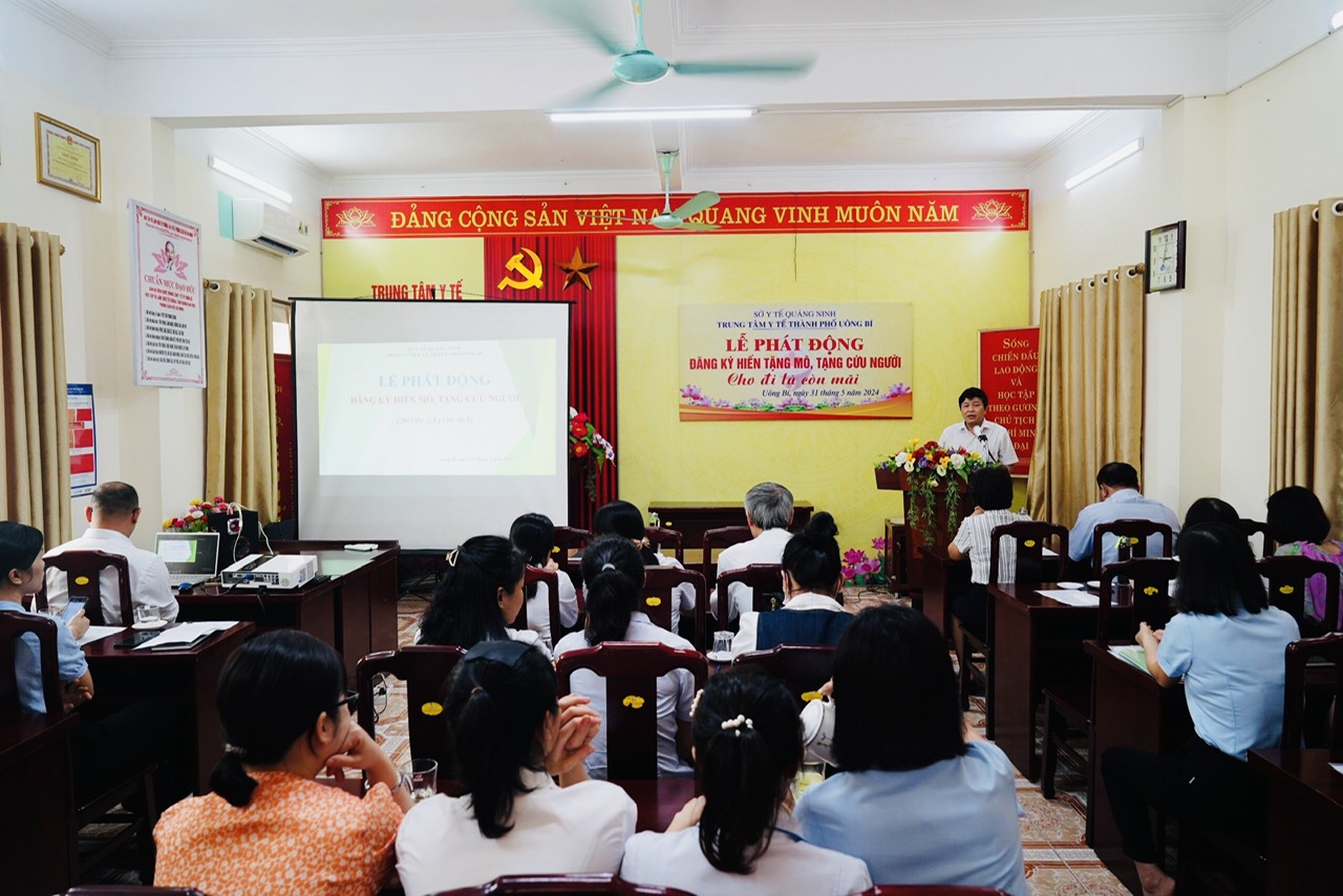 Đồng chí Nguyễn Trung Hoan - Phó Giám đốc điều hành Trung tâm Y tế thành phố phát động "đăng ký hiến tặng, mô tạng cứu người".