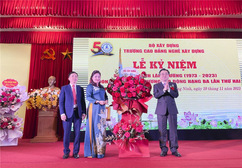 Ngày 10/11, Trường Cao đẳng nghề Xây dựng long trọng tổ chức Lễ kỷ niệm 50 năm ngày thành lập trường (1973-2023) và đón nhận Huân chương Lao động hạng Ba lần thứ 2. Dự, chúc mừng có các đồng chí: Nguyễn Thanh Nghị, Uỷ viên TW Đảng, Bí thư Ban cán sự Đảng, Bộ trưởng Bộ Xây dựng; Cao Tường Huy, Ủy viên Ban thường vụ Tỉnh ủy, Quyền Chủ tịch UBND tỉnh Quảng Ninh; Đỗ Năng Khánh, Phó Tổng cục trưởng, Tổng cục Giáo dục nghề nghiệp; Nguyễn Thanh Tùng, Uỷ viên BCH Tổng liên đoàn Lao động Việt Nam, Chủ tịch Công đoàn Xây dựng Việt Nam; Phạm Tuấn Đạt, Phó Bí thư Thành ủy, Chủ tịch UBND thành phố Uông Bí.