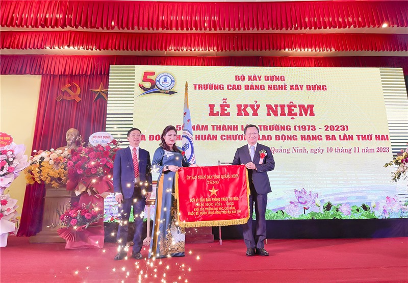 Tại buổi lễ, nhân kỷ niệm 50 năm thành lập Trường Cao đẳng nghề Xây dựng, Nhà trường vinh dự được Đảng, Nhà nước trao tặng Huân chương Lao động hạng Ba lần thứ hai; UBND tỉnh Quảng ninh tặng Cờ thi đua đơn vị dẫn đầu phong trào thi đua khối các trường Đại học, Cao đẳng thuộc Bộ, Ngành trung ương trên địa bàn tỉnh năm học 2021-2022.
