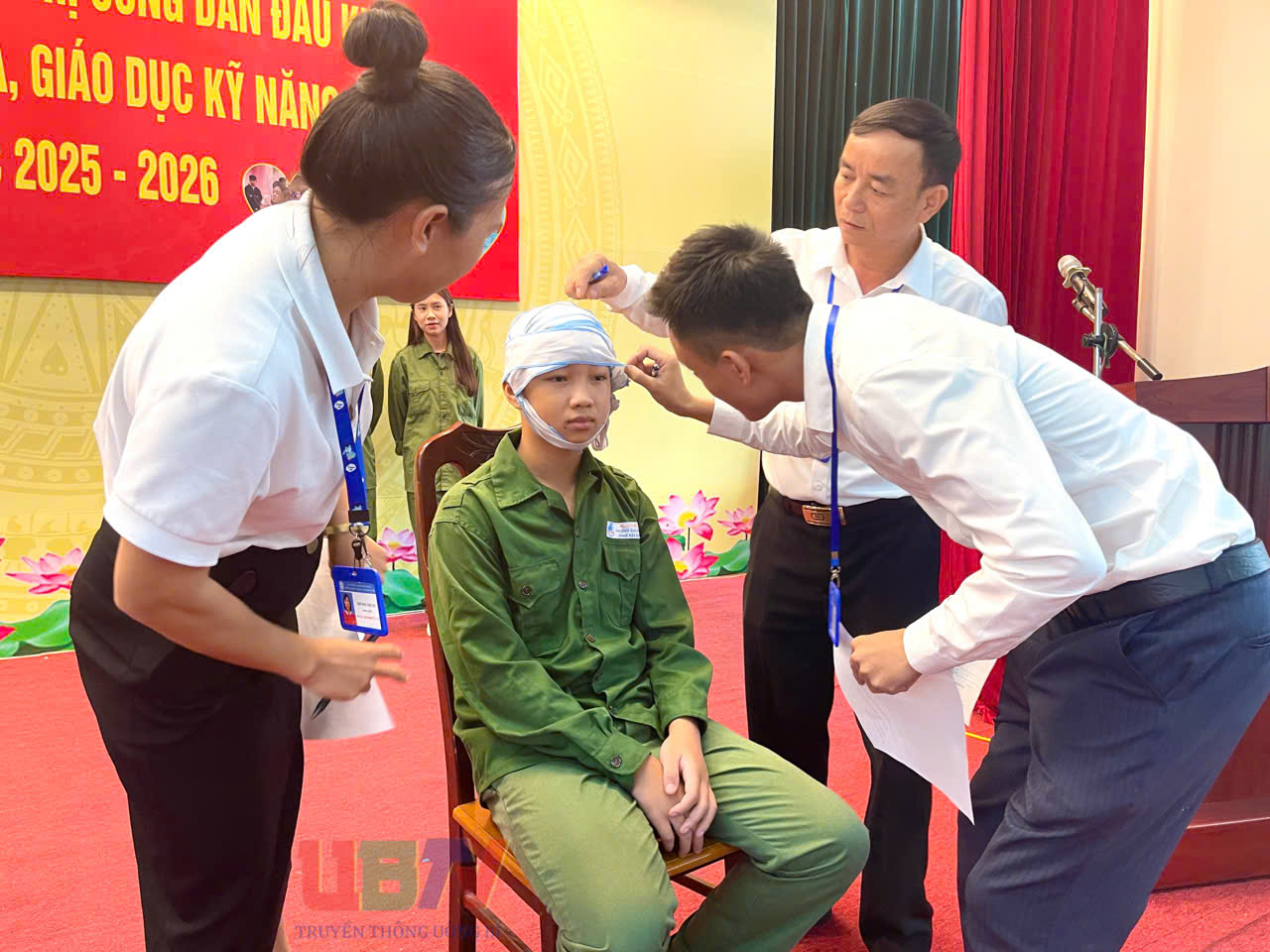 Các lớp tham gia phần thi sơ cứu, băng vết thương.