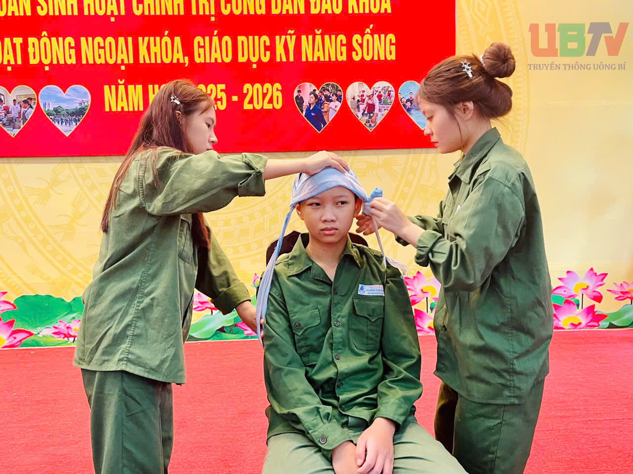 Trong đó, hoạt động “Chúng em là chiến sĩ” là điểm nhấn đặc biệt của chương trình, giúp học sinh trải nghiệm và rèn luyện kỷ luật và tác phong quân đội thông qua các hoạt động như thực hành gấp, xếp nội vụ, điều lệnh đội hình đội ngũ. Thông qua các hoạt động này giúp các em học sinh hình thành thói quen gọn gàng, ngăn nắp, thể hiện sự tiến bộ về kỷ luật và phối hợp tập thể.
