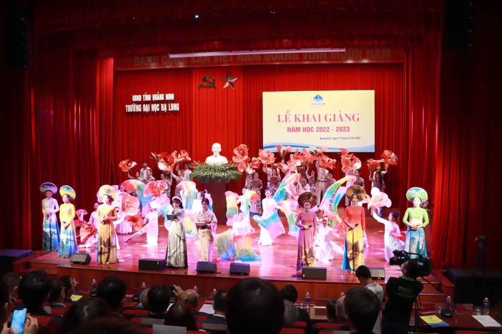 Tiết mục chào mừng khai giảng do các sinh viên Trường Đại học Hạ Long biểu diễn.